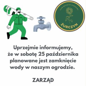 25.10.2025 roku w godzinach przedpołudniowych zostanie wyłączona woda. Prosimy wszystkich działkowców o podanie stanu wodomierza oraz życzycie wody w sezonie 2025 r. smsem lub…
