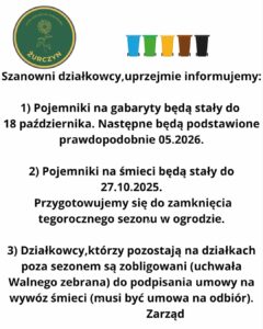 INFORMACJA ZARZĄDU STOWARZYSZENIA OGRODOWEGO „Żurczyn”